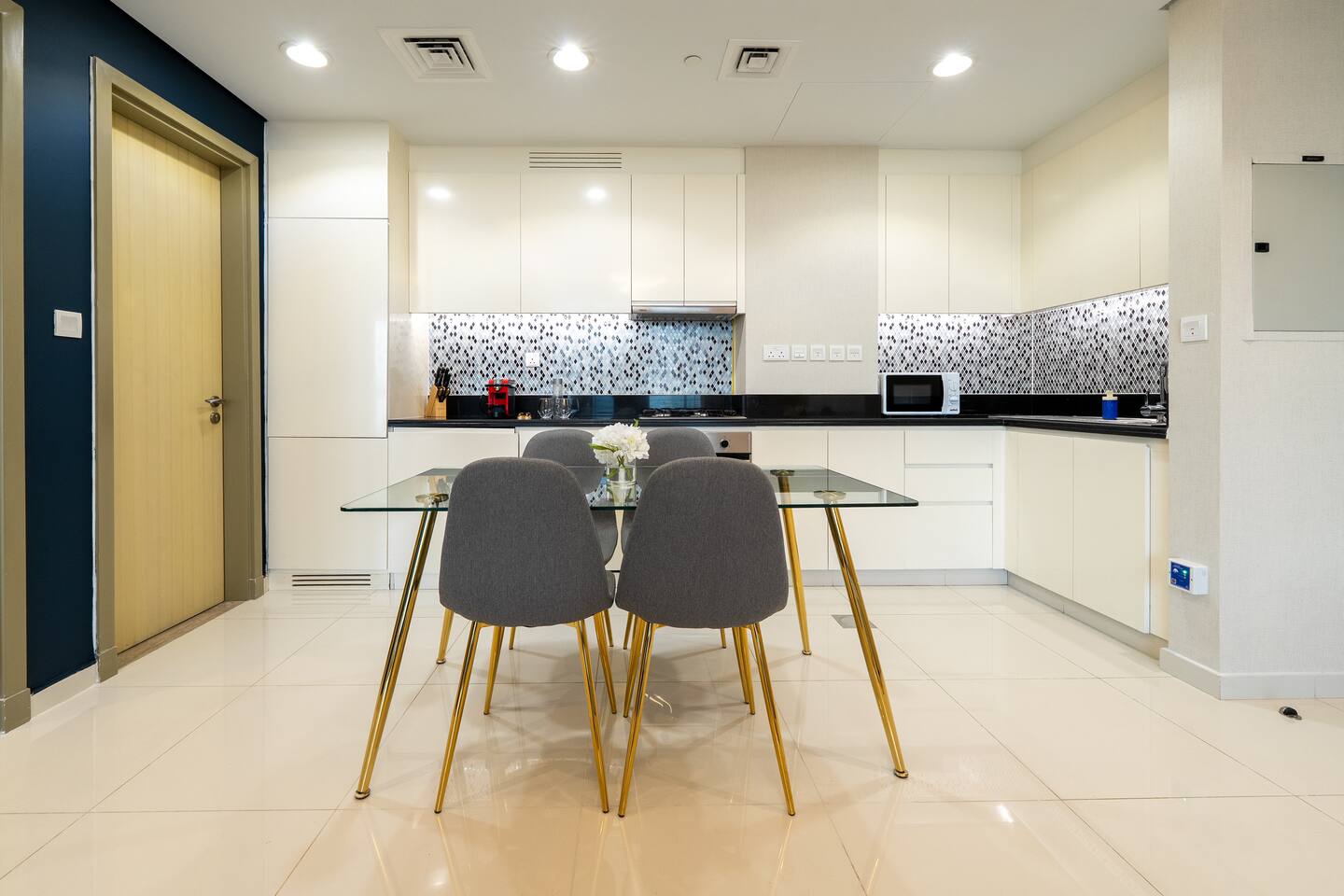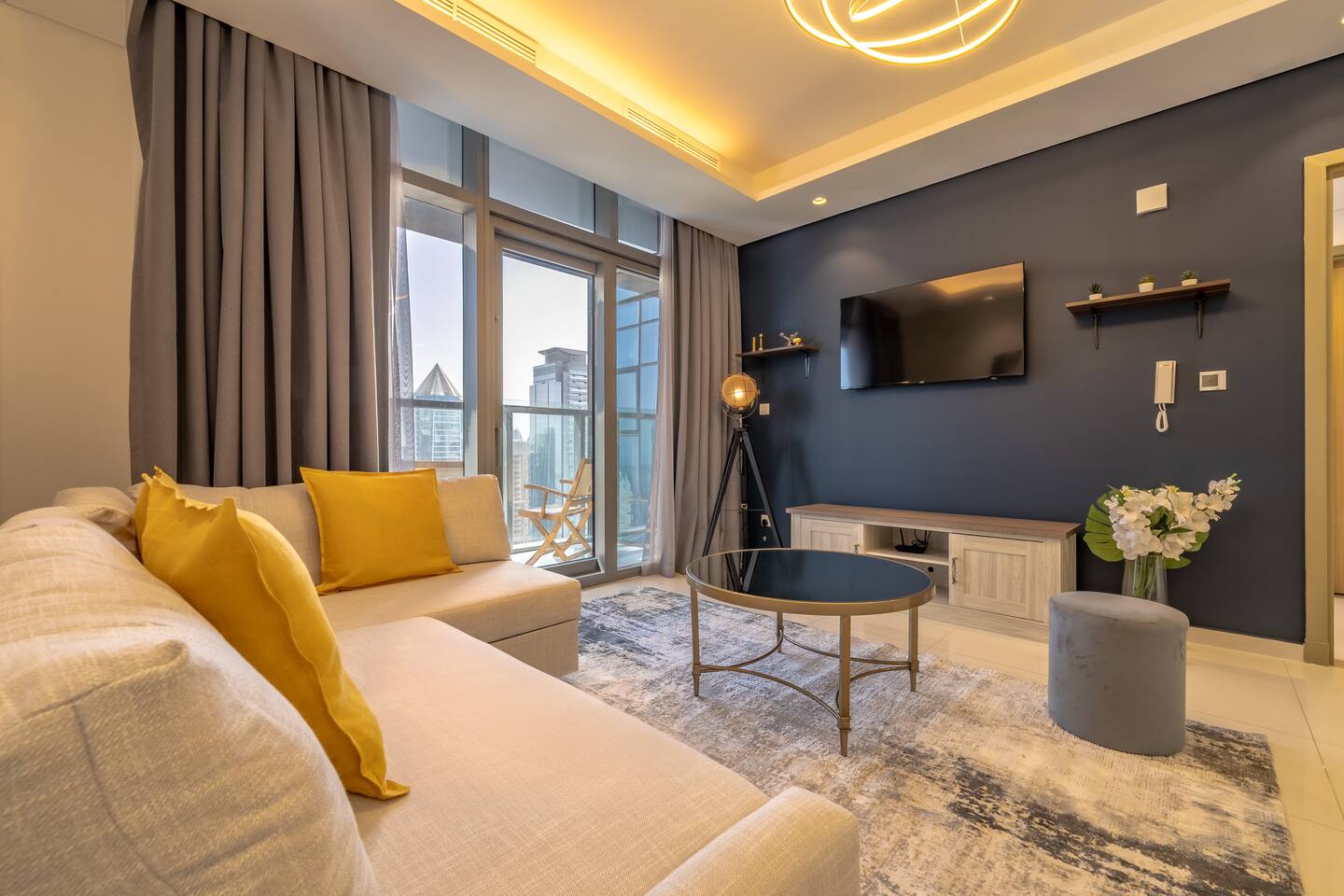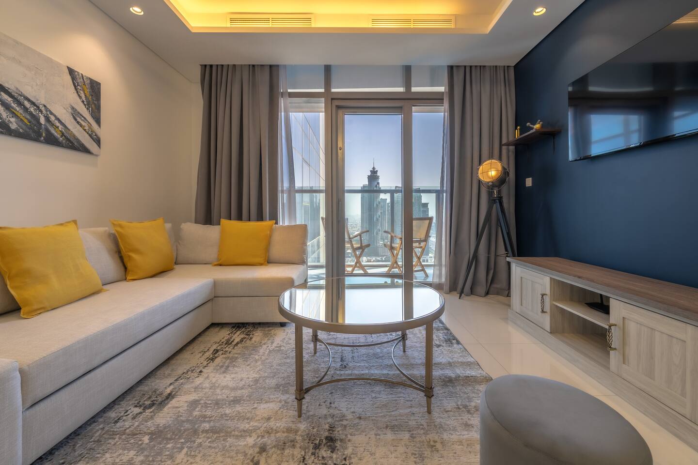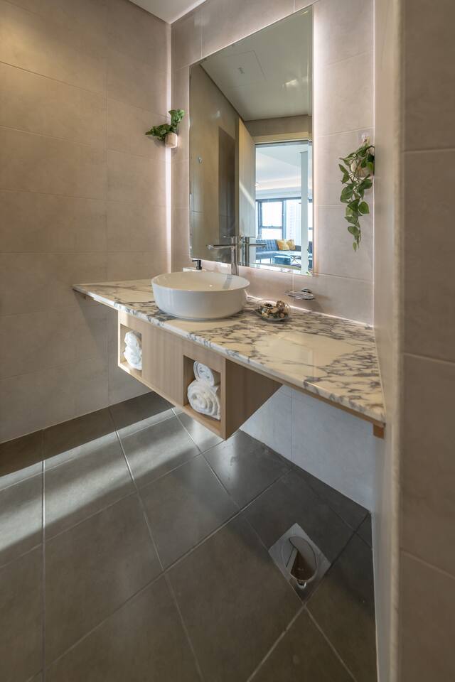 → Enter the lobby of this movie inspired building and you’ll be greeted with a fresh fragrant aroma, a scent of Hollywood and a concierge staff that is head over heels ready to help you. → You'll step into a bright, magical and modern home. There’s a TV to watch your all your favourite movies and a comfy king size bed to melt into. → Sure, there's nothing quite like a home cooked meal so there’s a stocked kitchen for you to cook whatever your heart desires. But, don’t feel like cooking? Indulge your senses in the five different restaurants and lounges available - A new culinary experience every day. → Spend the day exploring the heart of Dubai with Burj Khalifa and Dubai mall only a few minutes away. → When it’s time to relax, jump up to the 64th floor where you’ll be met with a stunning swimming pool that has a 360 view of Dubai. → Enjoy a swim or sit back with some food and drinks from the rooftop restaurant while gazing at the Burj and the beach! *** Be warned! Hazards of jaws dropping! Be sure not to miss out on the sunset and watch the night come to life. *** This apartment has everything you need to have a nice comfortable stay. From a huge sofa to a stocked kitchen. A free gym to have a work out to a desk to get some work done. ***Take advantage of the exclusive 20% off you’ll get at all restaurants, lounges, cafés in the building… and even the spa.***